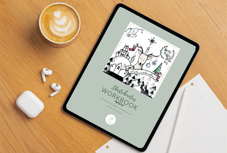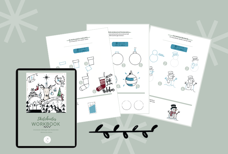 In meinemWeihnachts-Workbook findest du 24 einfache Schritt-für-Schritt-Anleitungen, die dir helfen, weihnachtliche Motive ohne Vorkenntnisse zu zeichnen. Jede Anleitung enthält kreative Tipps, um deine Fantasie zu beflügeln. Sei es, wie du die Zeichnungen ändern kannst oder wie du die Motive untereinander kombinieren kannst.
